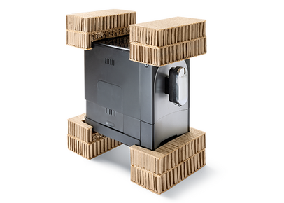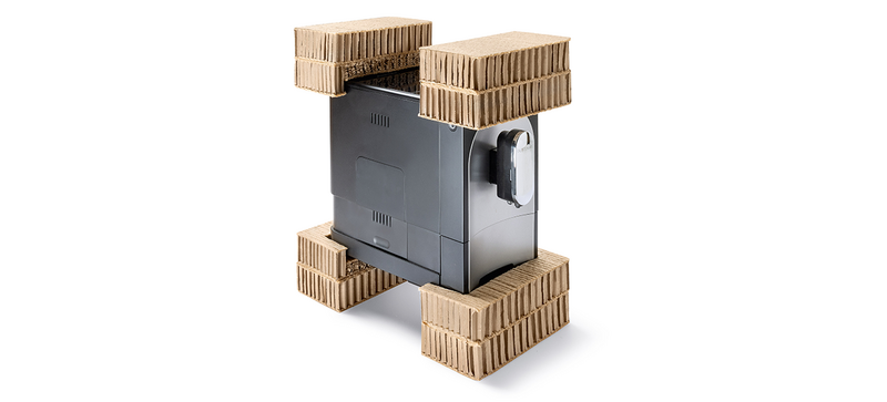 L'avantage de la combinaison innovante de RENATURE® Honeycomb est que la solution d'emballage place les cales exactement dans la bonne position pour une absorption optimale des chocs. Contrairement aux solutions à base de carton alvéolaire classique, RENATURE® Honeycomb ne nécessite ni colle ni ruban adhésif : l'eau suffit pour le collage.
